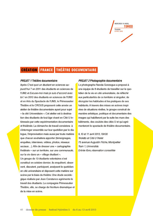 Communication visuelle globale de la cinquième édition du festival de théâtre documentaire